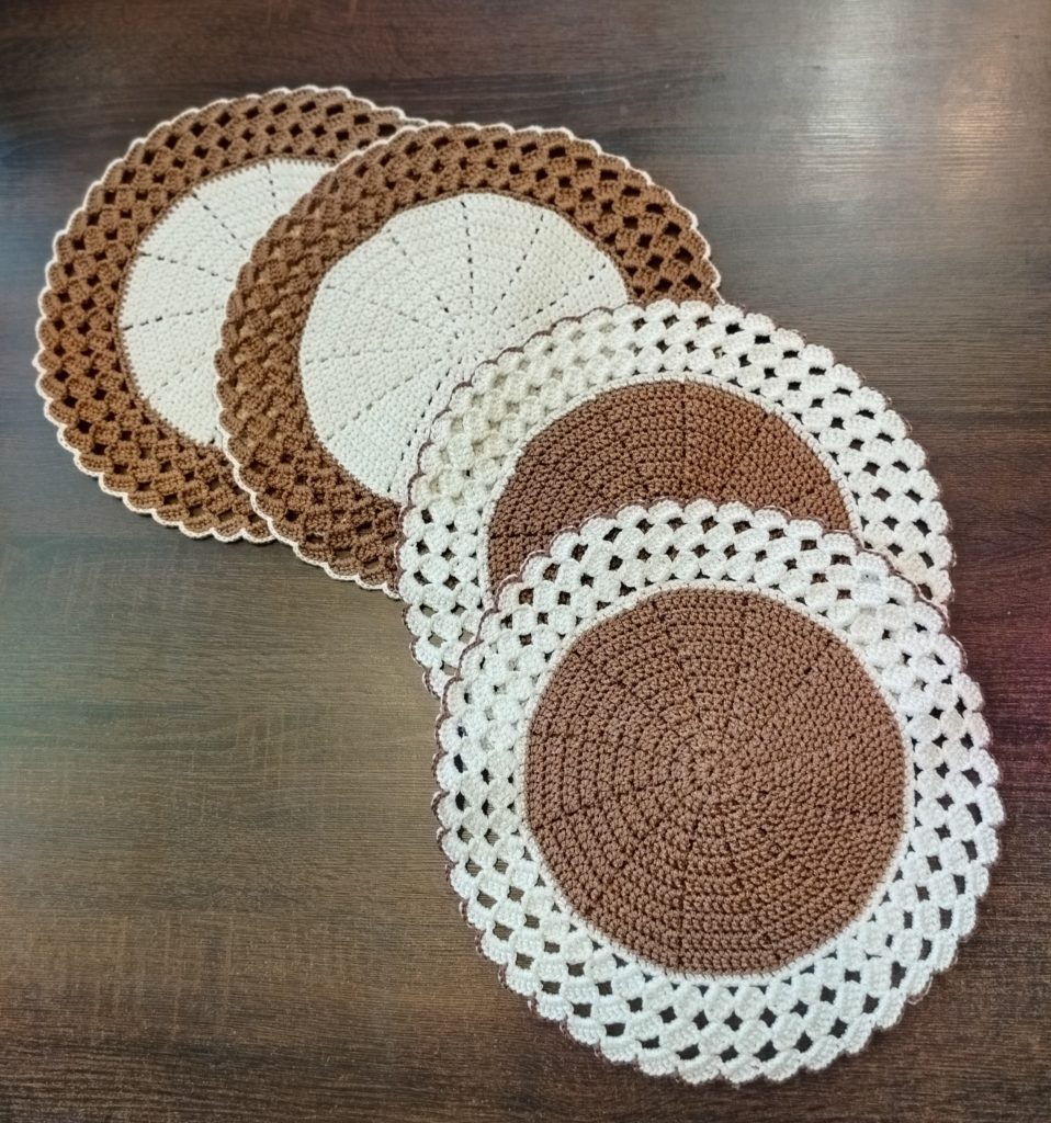 Szydełkuję i dziergam na drutach z różnych nitek. Bardzo modne teraz są prace ze sznurka bawełnianego lub poliestrowego różnej grubości. Rękodzielniczki z grubego sznurka tworzą chodniczki, dywaniki albo z cieńszego koszyczki, torebki, torby zakupowe, podkładki pod talerze i wiele innych fajnych rzeczy. Z nitki bawełnianej, wełnianej czystej lub z akrylem wychodzą bardzo ładne szale, chusty, czapki, szaliki, że o swetrach, kamizelkach itp nie wspomnę bo to standard, a z kordonka cudne ozdoby na Boże Narodzenie czy Wielkanoc.